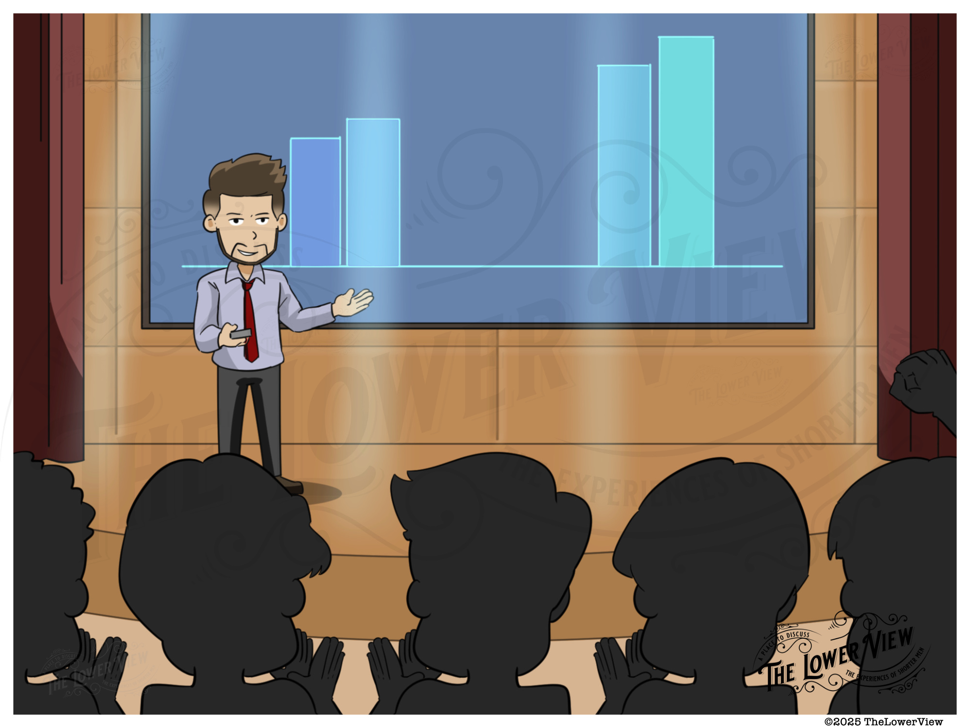 Public speaking isn't for everyone. Some people come to life before an audience and thrive on the attention. Others shrink from the stage and avoid any possibility of having to speak publicly. Personality has much to do with this, but so does confidence. For a short guy, the confidence piece sometimes needs some cultivation.