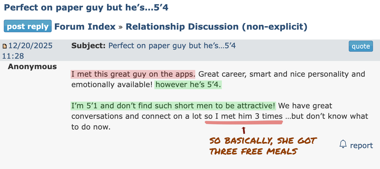 Re: She said he's perfect on paper... but 5'4