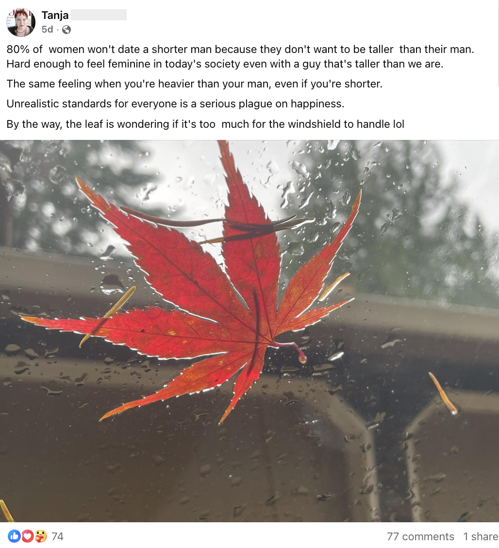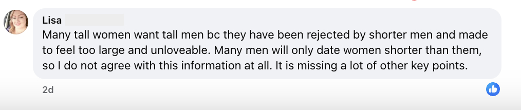 Woman calls out unrealistic height standards in dating. Responder blames short men.
